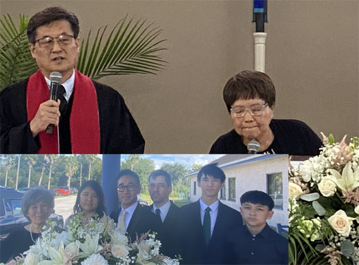 이날 말씀을 전한 이병진 목사는 “우리 성도들은 짧은 인생을 사는 나그네이다, 하나님의 말씀 안에서 사는 우리는 언젠가 본향을 찾아 간다”라고 강조해 함께 은혜를 받았다, 또 이 목사는 “탐욕과 욕망으로 사는 것이 일반적인 우리의 삶이지만 이제 우리는 이 모든 것을 버리고 신령한 마음으로 믿음 생활을 하다 천국에서 다시 만나기를 바란다”며 말씀을 전했다. 이날 올랜도에서 참석한 강성금 사모는 예배설교와 모든 순서를 영어와 한국어로 통역해 조문객들의 이해를 돕기도 했다.