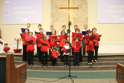 이날 첫 출연 교회는 파스코 한인장로교회(목사 장성자)로 3명(반주자 포함)이 무대에 올라 ‘서로 사랑하자’를 열창했고, 두 번째는 탬파한인침례교회(목사 이준엽) 찬양대로 17명(반주자 포함)이 ‘그 맑고 환한 밤중에’, 세 번째 출연교회는 탬파한인감리교회(목사 한명훈)찬양대로 22명(지휘자/반주자포함)이 ‘기쁘다 구주 오셨네’를 열창해 성도들로부터 ‘아멘, 아멘’을 화답 받으며 찬양제는 은혜와 축복의 도가니로 빠져 들기 시작했다.
