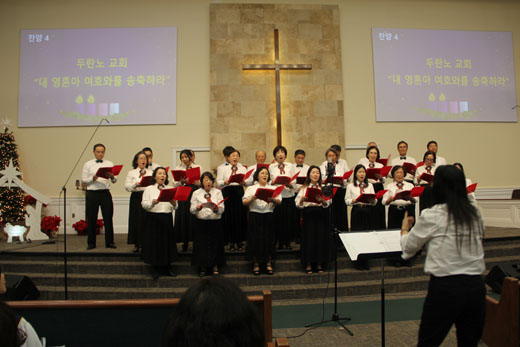 이아 네 번째 출연교회는 두란노교회(목사 김중열)로 32명(지휘자, 반주자, 바이올린, 드럼본, 플롯 등)이 출연해 ‘내 영혼아 여호와를 송축하라’를 불렀으며, 다섯 번째 출연교회는 키스톤 침례교회(목사 김은복)로 23명(지휘자, 피아노, 바이올린)이 ‘The First Noel’를, 여섯 번째 출연교회는 탬파한인장로교회(목사 김정곤)로 20명(지휘자)이 출연해 아기예수의 탄생을 축하하는 ’기쁘다 구주 오셨네‘를 열창해 아멘 할렐루야와 함께 우레 같은 박수를 받았다.