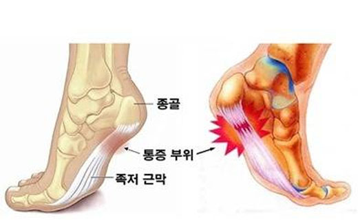 이 증상은 특히 아침에 일어나 첫 발을 내딛을 때 가장 심한 찌릿함이나 통증을 느끼는데 주로 발뒤꿈치 안쪽에서 시작하여 발바닥 전체로 통증이 퍼져 나가기도 한다.