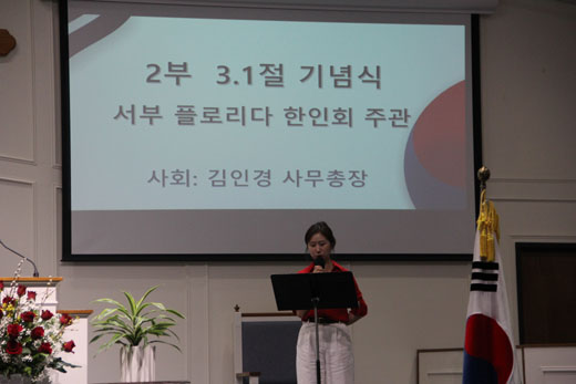 (탬파) 서부플로리다한인회(회장 강선이)와 서부플로리다교회협의회(회장 이순일 목사)기 공동으로 주최한 제107주년 기념예배 및 기념식이 지난 3월 1일 오후 4시부터 탬파한인장로교회(김정곤 목사)에서 100명의 동포 및 관계자들이 참석한 가운데 엄숙하게 진행됐다.