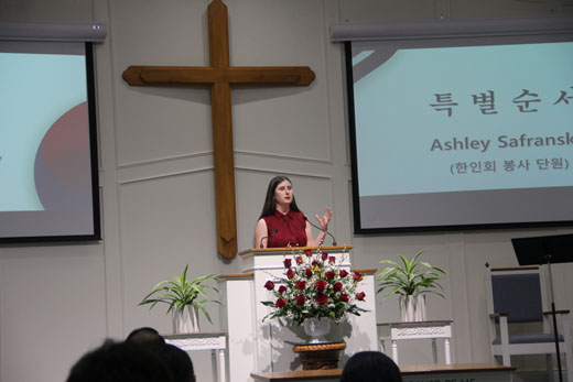 또 다른 특별 순서로 Ashley Safransky 양의 인사가 있었다. 그는 한국어를 배우며 한국을 사랑하게 되었고, 가족과 함께 한국을 방문한 경험과 고려대학교에서 한국어를 배우며 그 사랑이 더욱 깊어졌다고 전했다. 이제는 한국 사람들에게 받은 사랑에 보답하고자 이곳 한인회를 위해 자원봉사를 하고 있다며, 어눌하지만 정감 어린 한국어로 인사를 전해 많은 박수를 받았다.