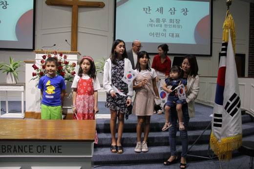 이어 삼일절 노래 제창 후 노흥우 회장(제14대 한인회장)과 참석한 어린이들이 함께 태극기를 들고 “대한독립 만세” 삼창을 힘차게 외쳤다.