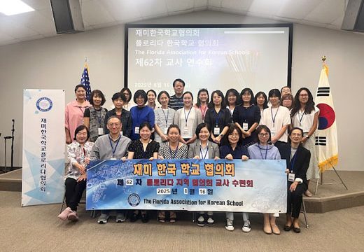 재미한국학교 플로리다협의회, 제62차 교사 연수회가져 개교 30주년상, 장기근속 교사상 등 다채로운 시상식 (올랜도) 재미한국학교 플로리다협의회(회장 전인애)가 주최한 제62차 교사 연수회가 지난 8월 16일(토) 오전 9시부터 올랜도한국학교(교장 김현)에서 개최되었다. 이번 연수회에는 플로리다 지역 9개 한국학교에서 교사 및 학교 관계자 총 41명이 참석해 자리를 빛냈다. 전인애 회장의 사회로 시작된 연수회는 재미한국학교협의회(NAKS) 권예순 총회장의 환영사와 최홍윤 애틀랜타 교육원장의…