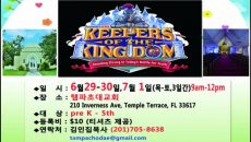탬파 초대교회, 여름성경학교 개최 6월29일~ 7월1일 사흘간. 오전 9시부터 12시까지 (탬파) 초대교회(목사 김인집 / 210 Inverness Ave, Temple Terrace, FL 33617)에서는 여름방학을 이용해 어린이들을 위한 여름성경학교를 ‘Keepers of the Kingdom’이라는 주제로 오는 6월29일(목)부터 7월1일(토)까지 사흘간 개최한다. 모집 대상은 유치원생부터 5학년까지로 성경공부 시간은 오전 9시부터 낮 12시까지이며 등록비는 개인당 10달러(티셔츠 제공)이다. 김인집 목사는 여름성경학교는 우리 자녀들이…
